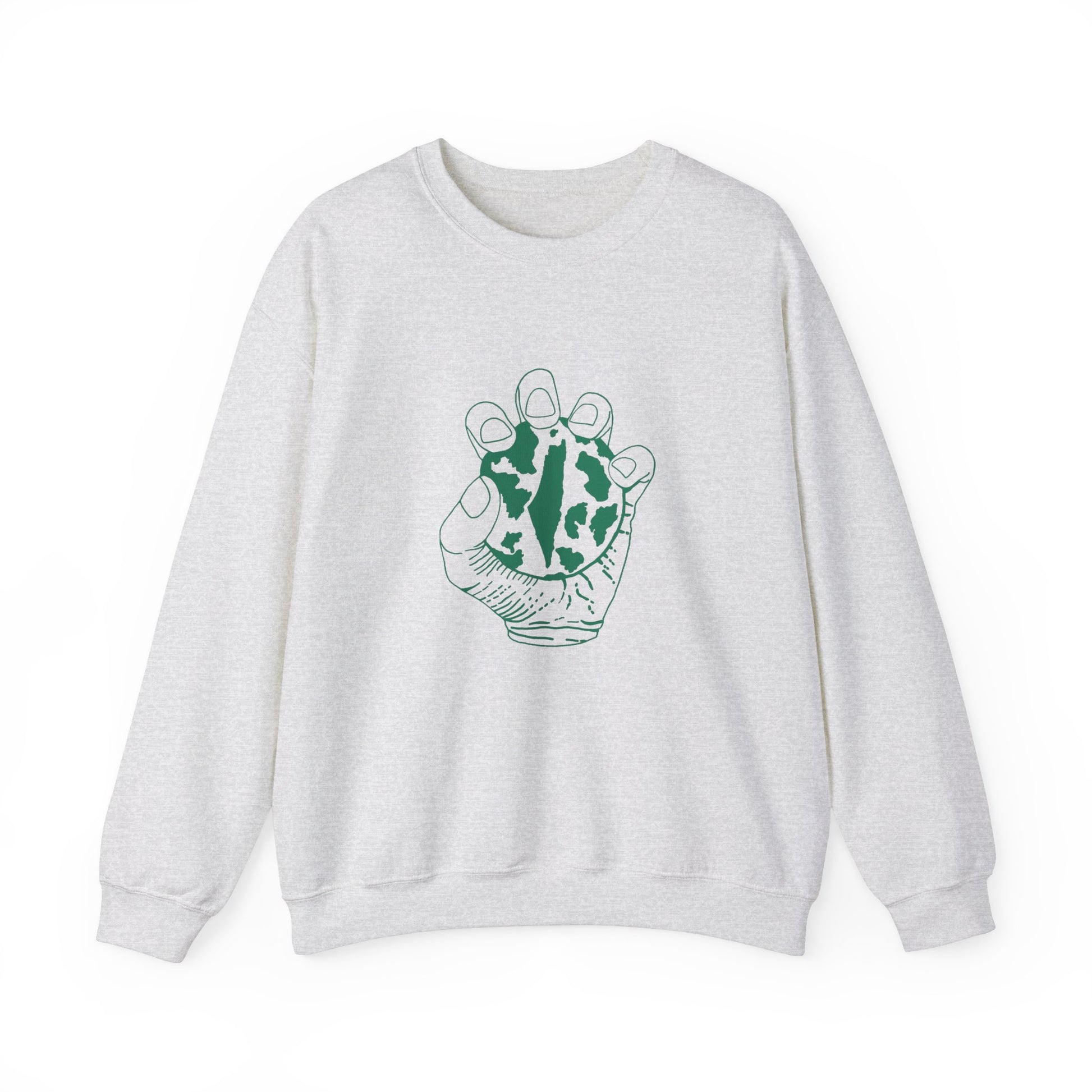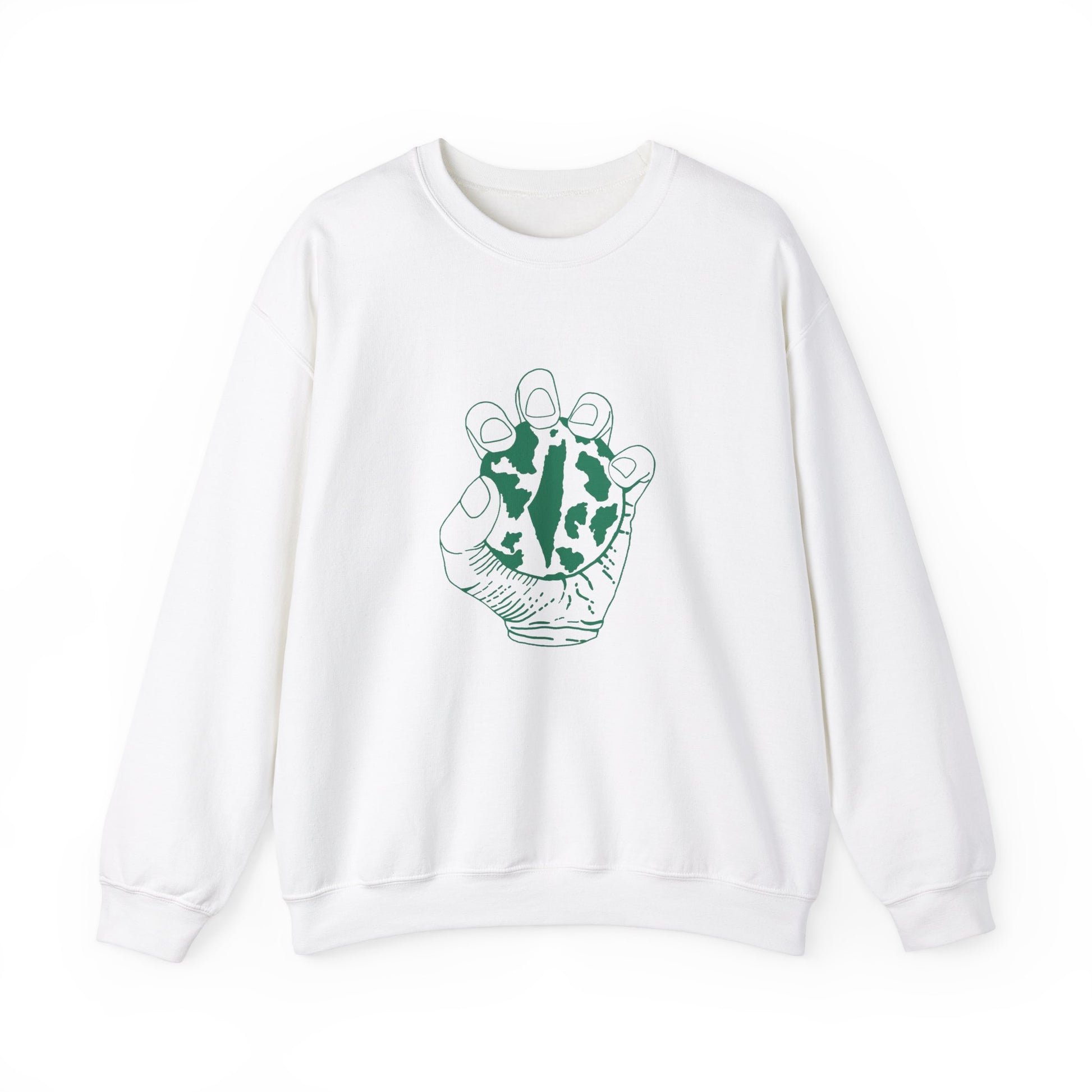 This is a unisex heavy blend warm and comfortable crewneck with our All Over The World design in green