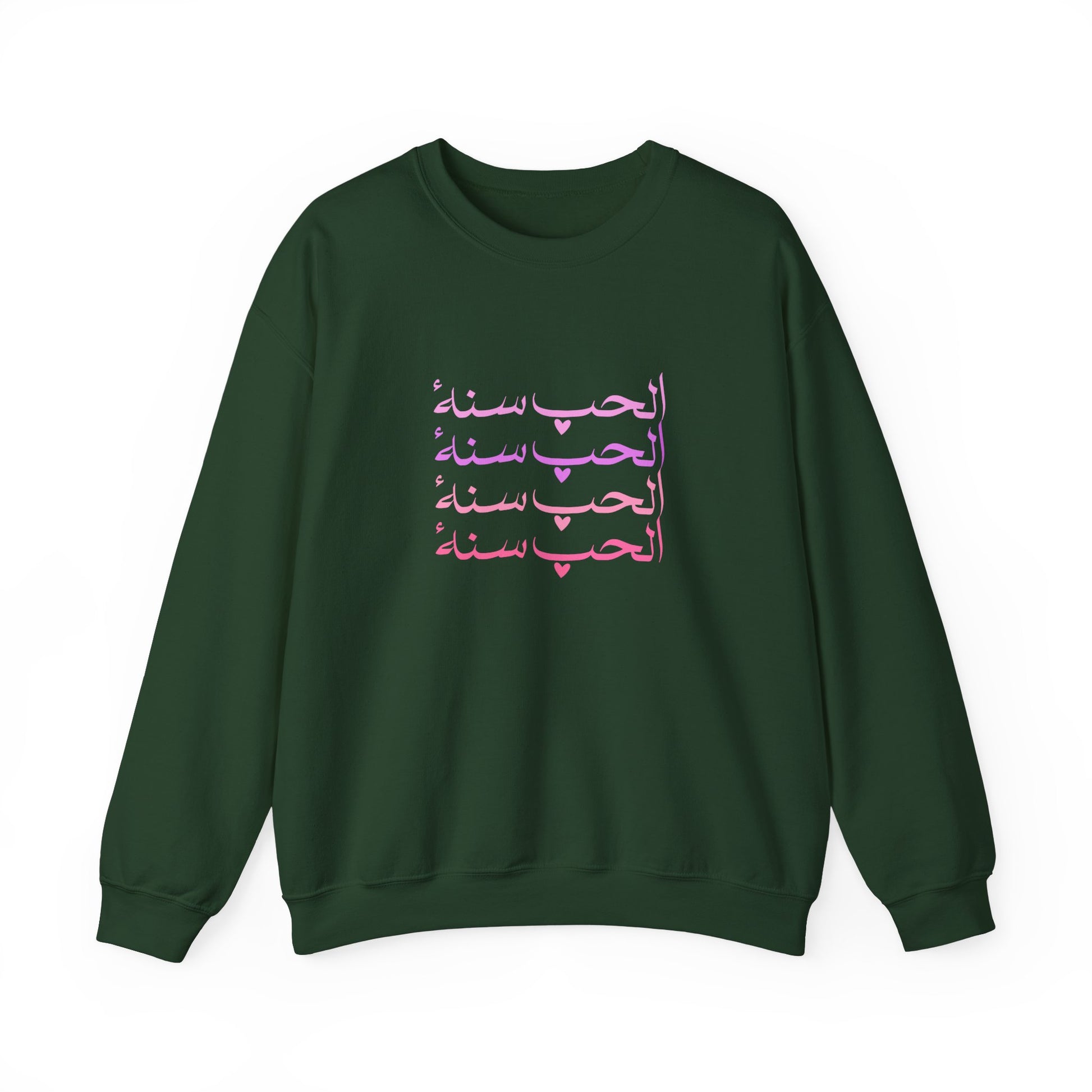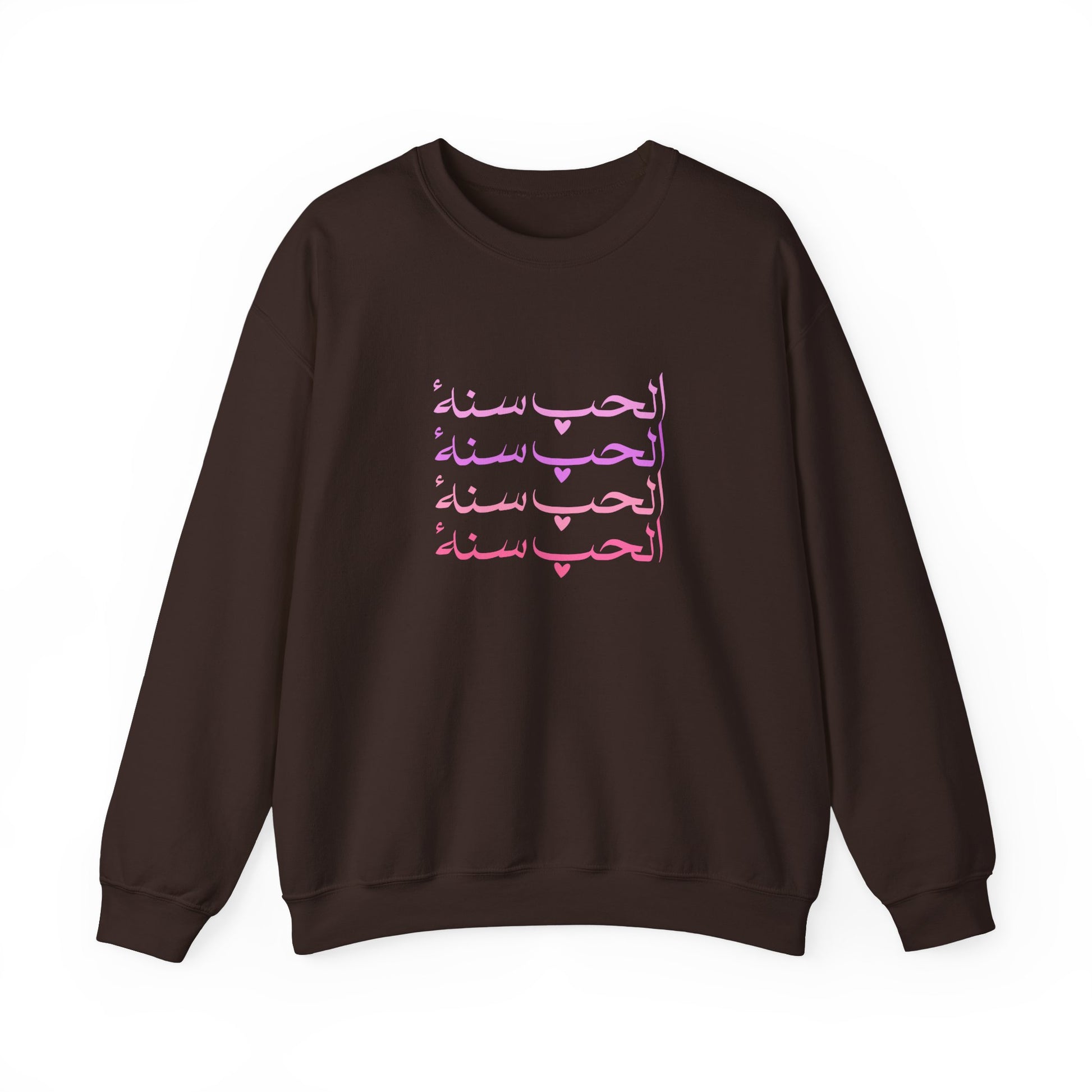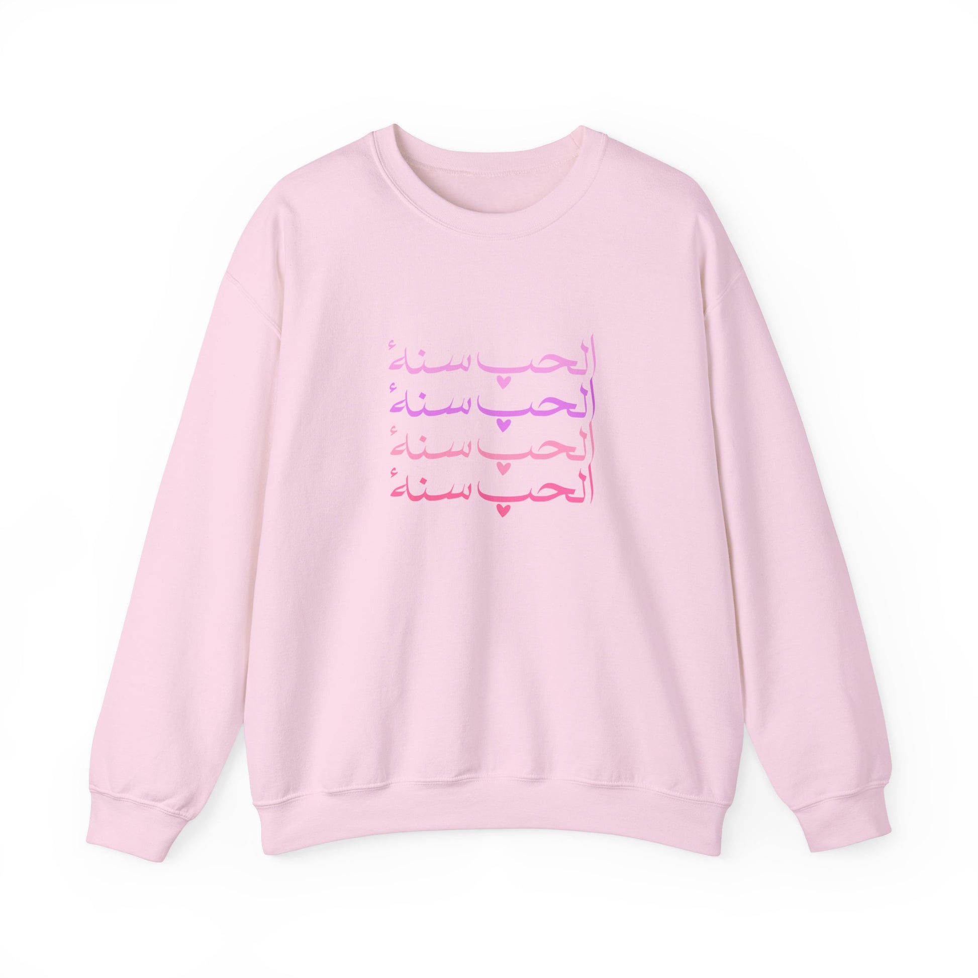 This is a unisex heavy blend warm and comfortable crewneck with our Love is Sunnah design in purples/pinks.