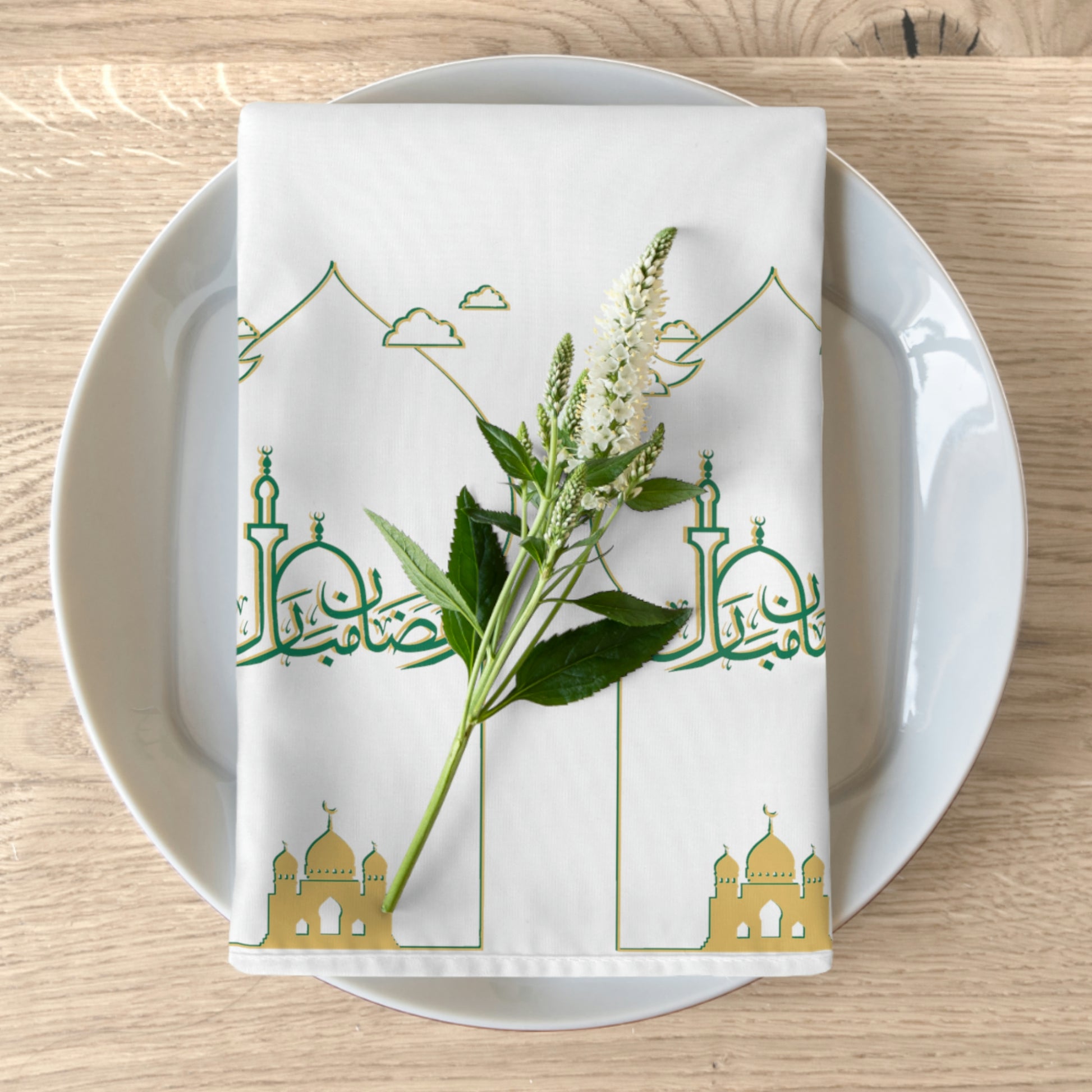 Our personalized Ramadan Mubarak napkins bring much needed character to the table. Made with luxuriously soft microfiber fabric, printed on the top with non-printed white bottom, our 4-piece sets are the ideal choice for your Ramadan Feast!