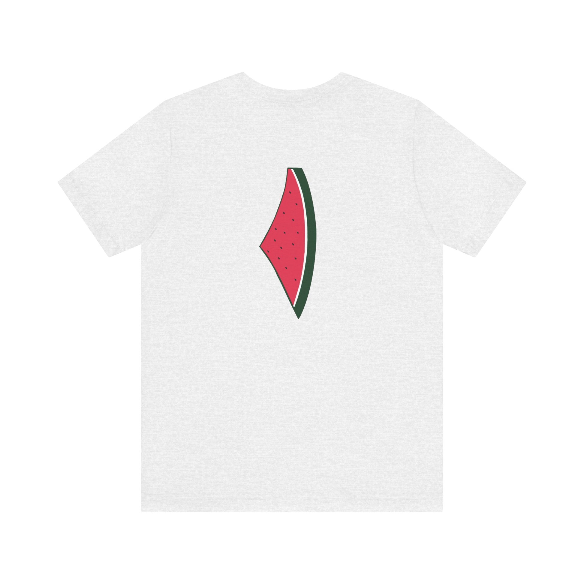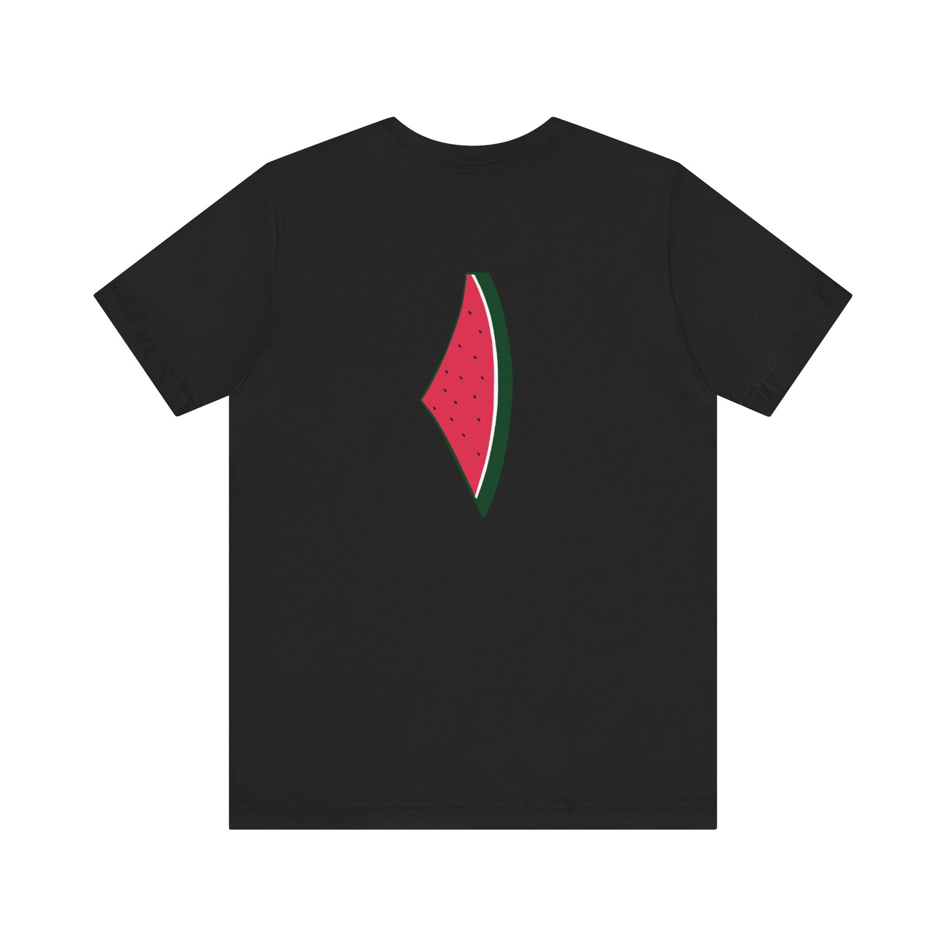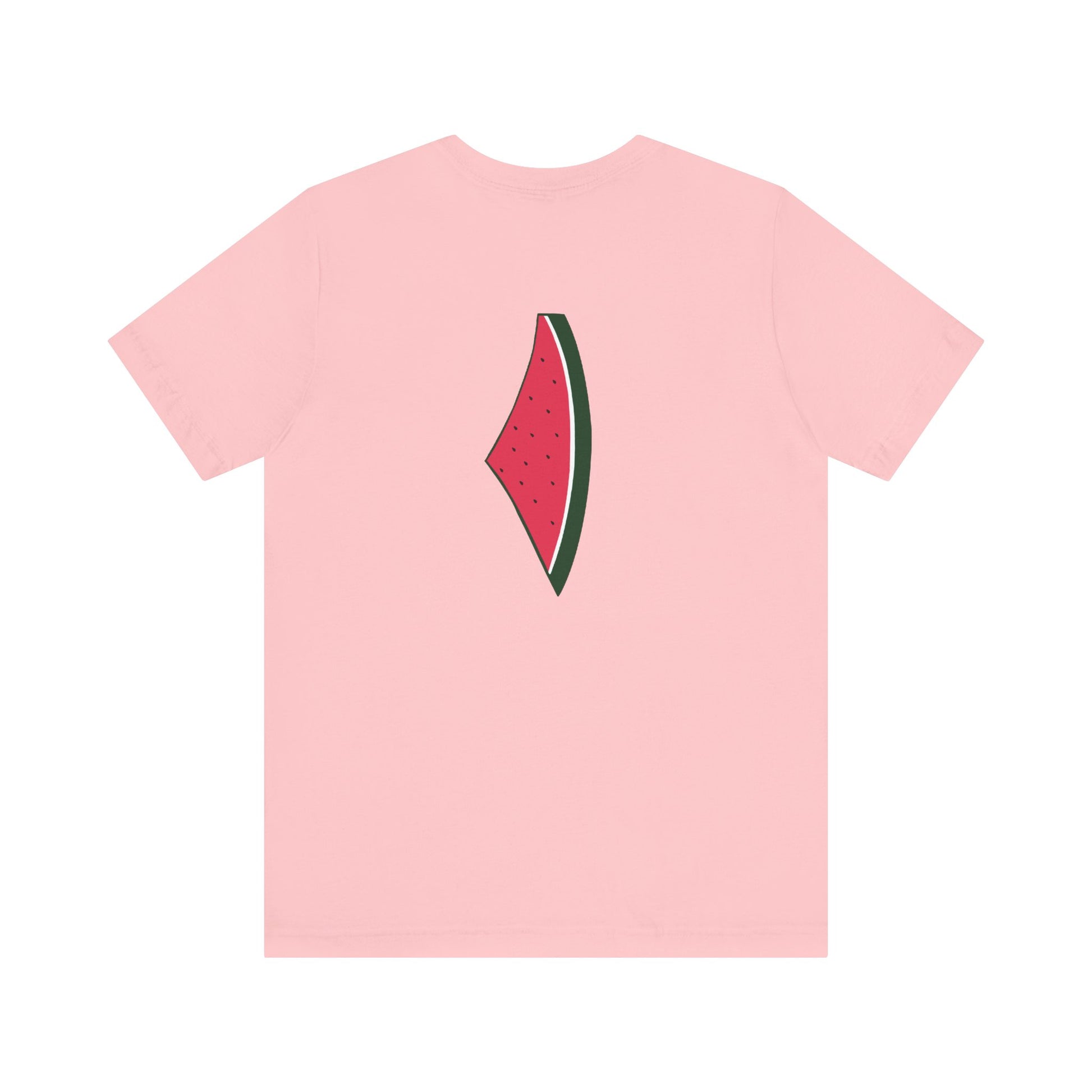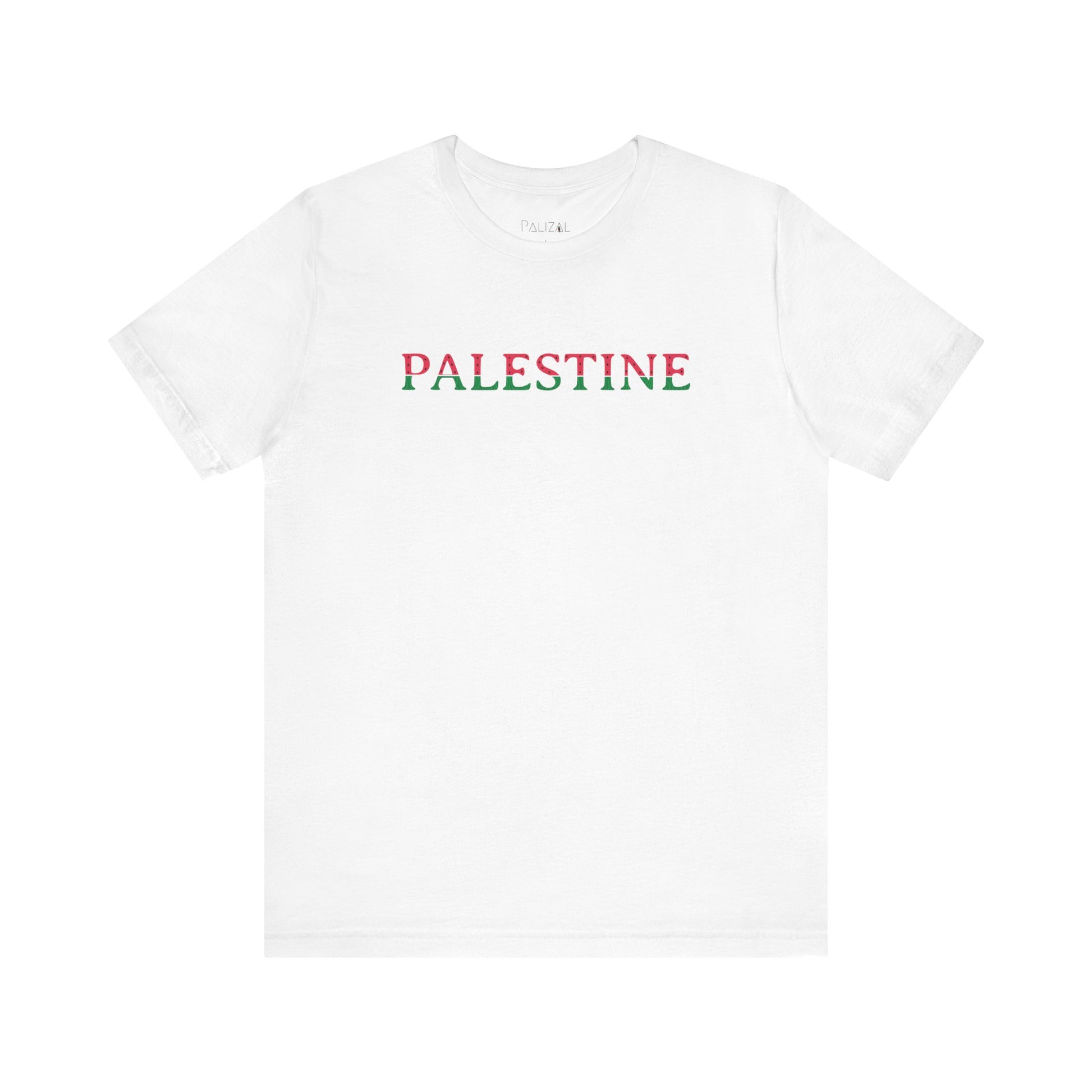 This soft tee has "Palestine" in watermelon letters in the front with watermelon drawing in the back.