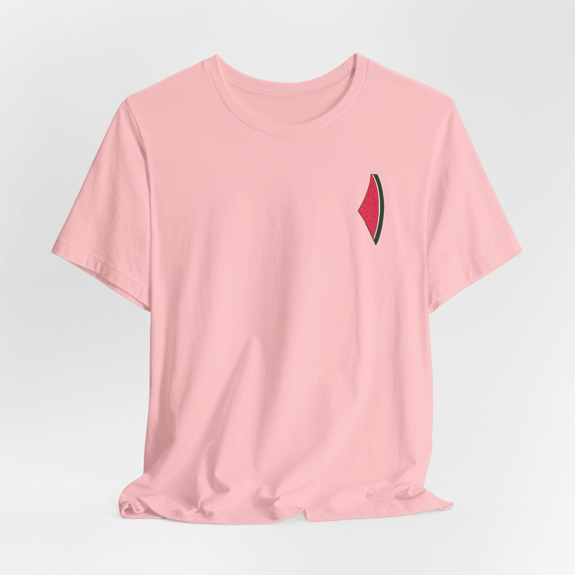 This soft tee has our watermelon logo in the left front corner with a plain back.