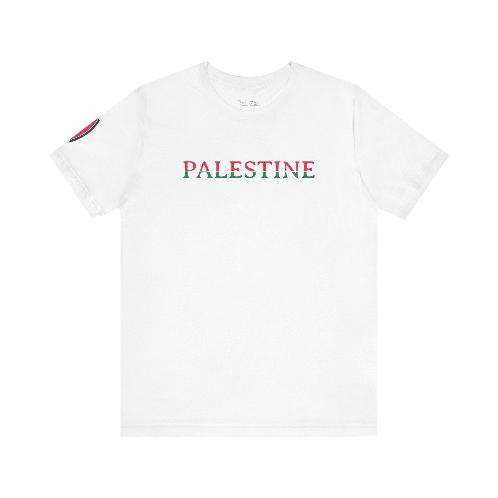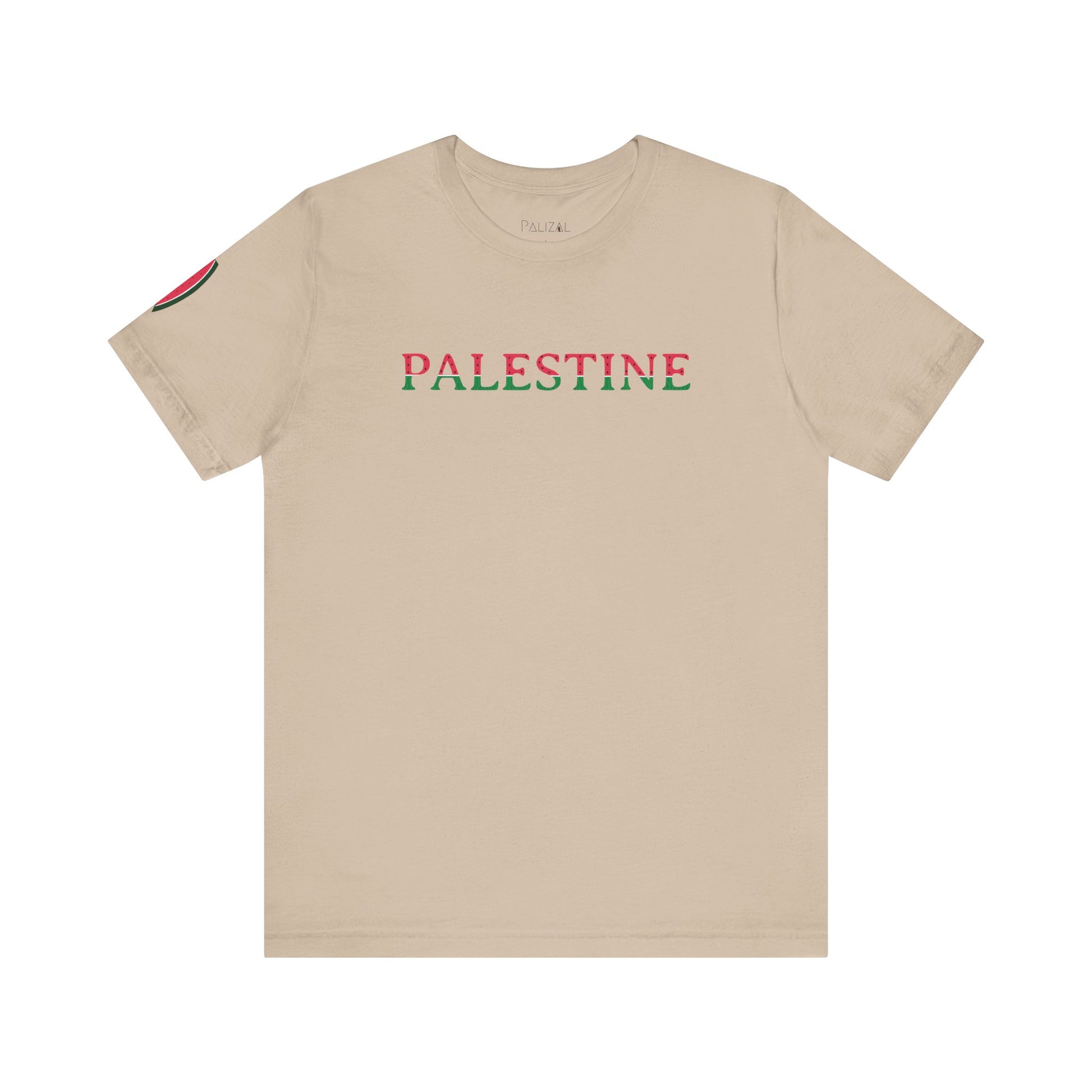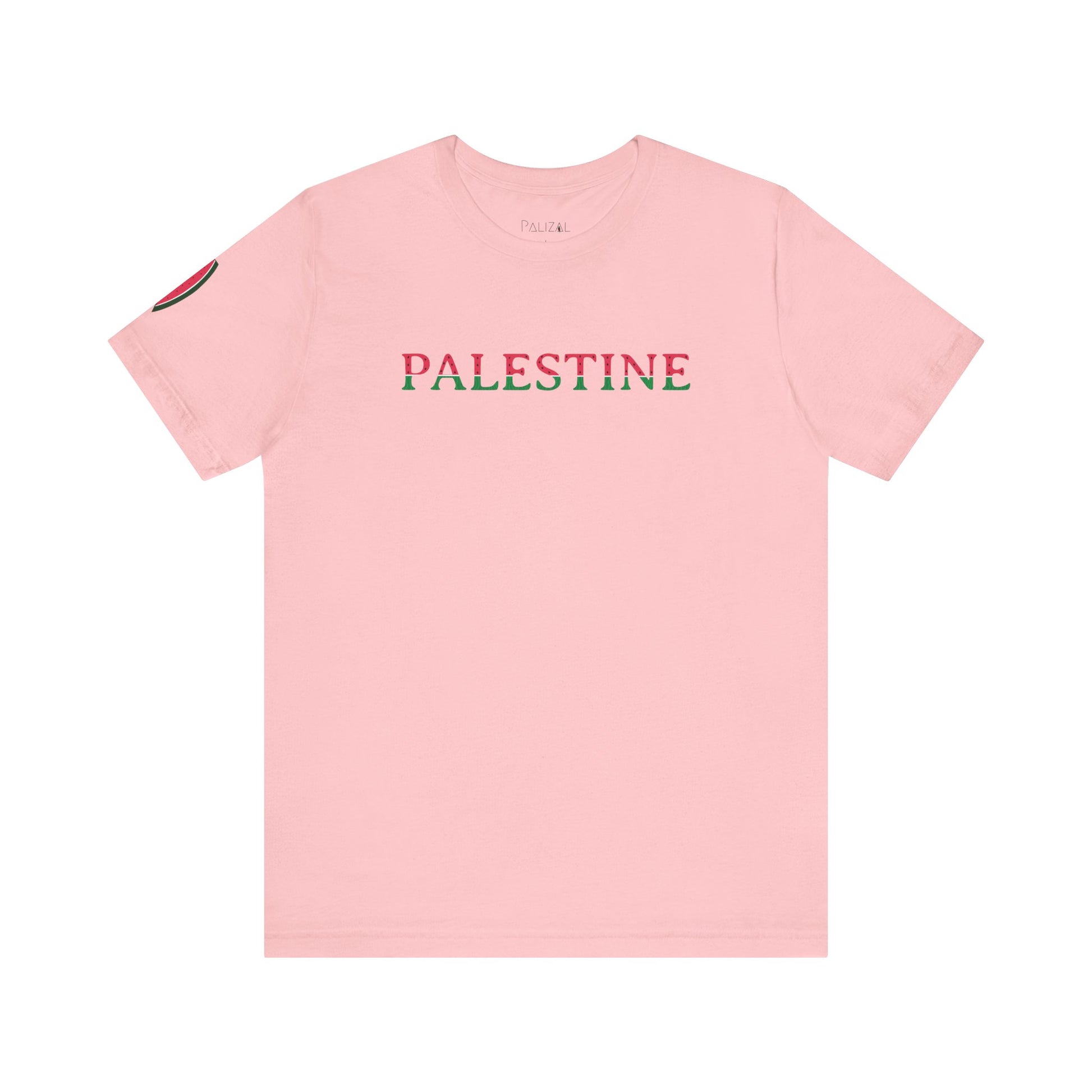 This soft tee has "Palestine" in watermelon letters in the front with a plain back.