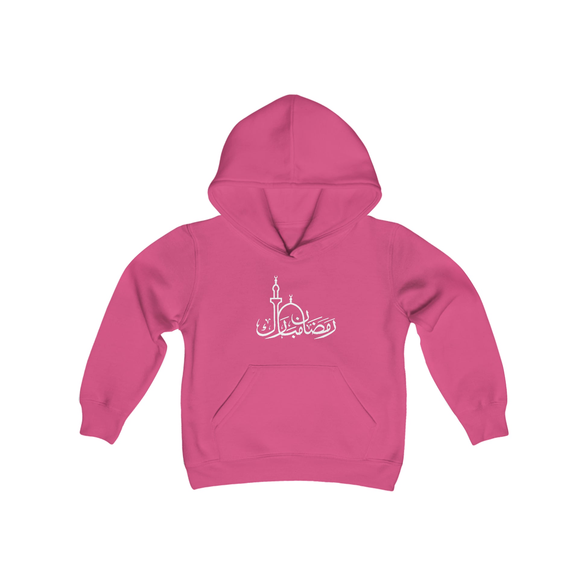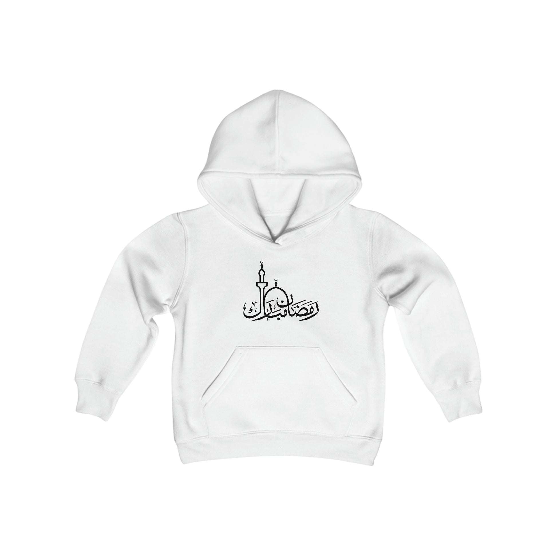 The youth blend hooded sweatshirt has our Ramadan Mubarak Design in Arabic and is made of ultra-soft, preshrunk fleece that feels wonderful against the skin.